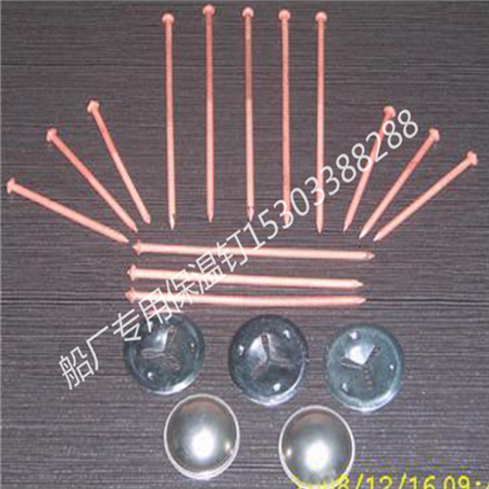 保溫碰釘分碰釘和鎖片兩部分構(gòu)成,碰釘由低碳鋼或不銹鋼加工而成,然后在表面鍍鋅或者是鍍銅,鎖片是由鍍鋅板或者是鍍銅板經(jīng)過沖壓成型。